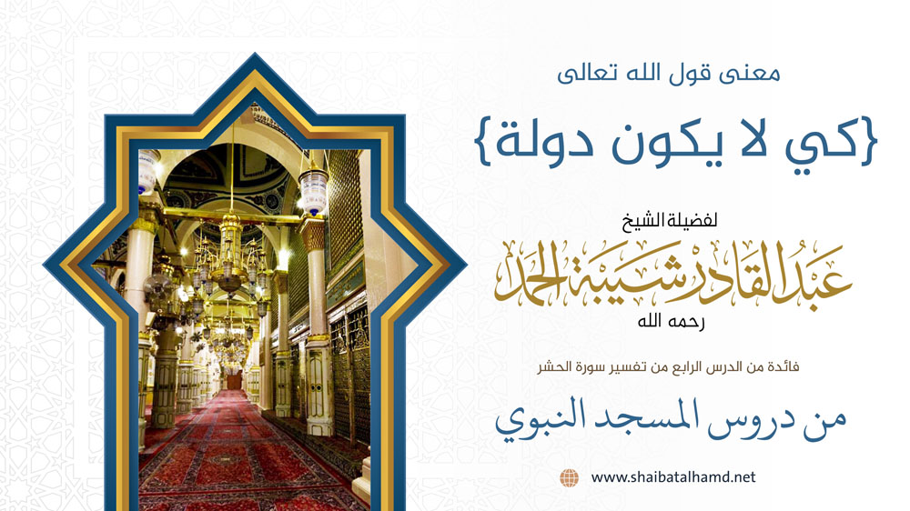 فائدة من الدرس الرابع من دروس تفسير سورة الحشر والتي ألقيت في المسجد النبوي الشريف حول معنى: {كي لا يكون دولة}.