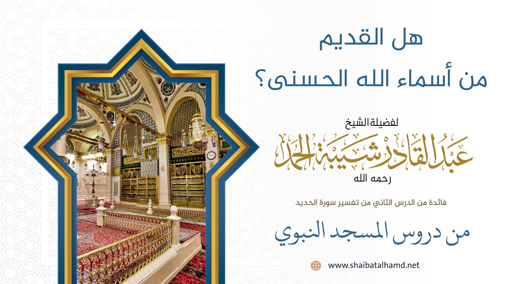 فائدة من الدرس الثاني من دروس تفسير سورة الحديد والتي ألقيت في المسجد النبوي الشريف حول هل "القديم" من أسماء الله الحسنى؟