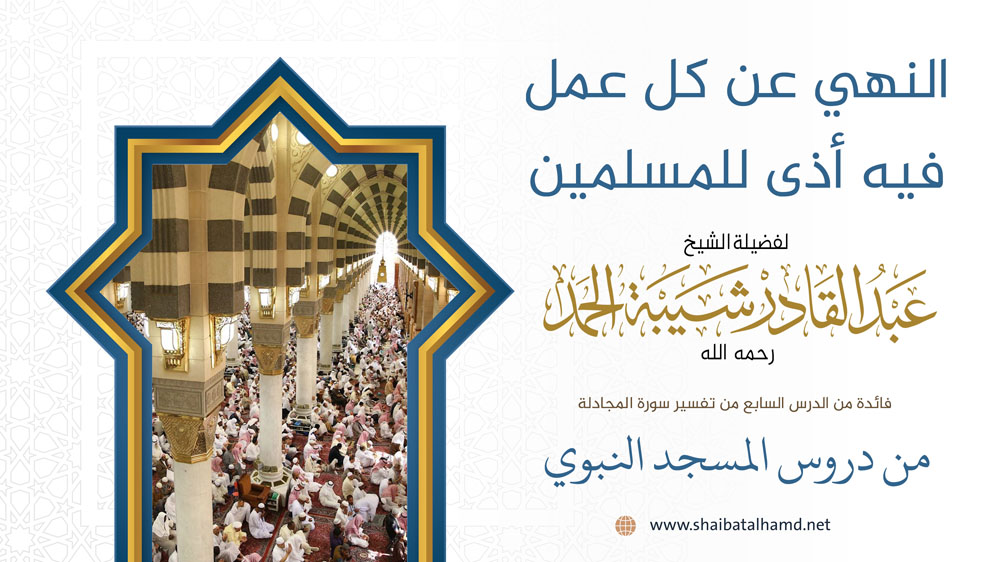 فائدة من الدرس السابع من دروس تفسير سورة المجادلة والتي ألقيت في المسجد النبوي الشريف حول النهي عن كل عمل فيه أذى للمسلمين.