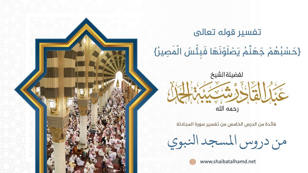 فائدة من الدرس الخامس من دروس تفسير سورة المجادلة والتي ألقيت في المسجد النبوي الشريف حول تفسير قوله تعالى {حسبهم جهنم يصلونها فبئس المصير}.