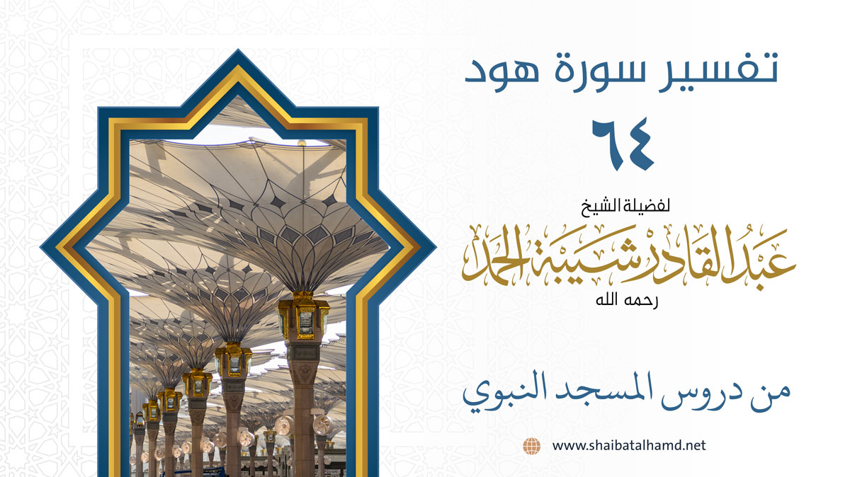 الدرس الخامس والستون من دروس تفسير سورة هود والتي ألقاها الشيخ في رحاب المسجد النبوي حول الآيات من الآية 36 إلى الآية 39.