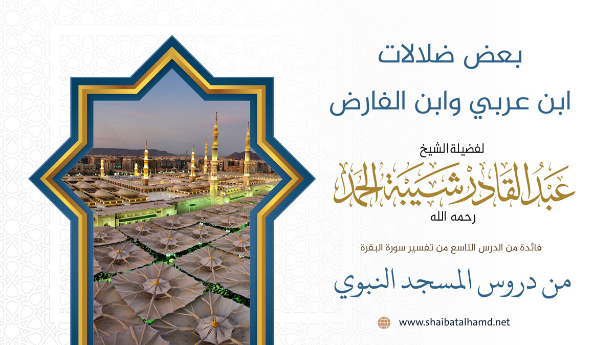 فائدة من الدرس العاشر من دروس تفسير سورة البقرة والتي ألقيت في المسجد النبوي الشريف حول بعض ضلالات ابن عربي وابن الفارض.