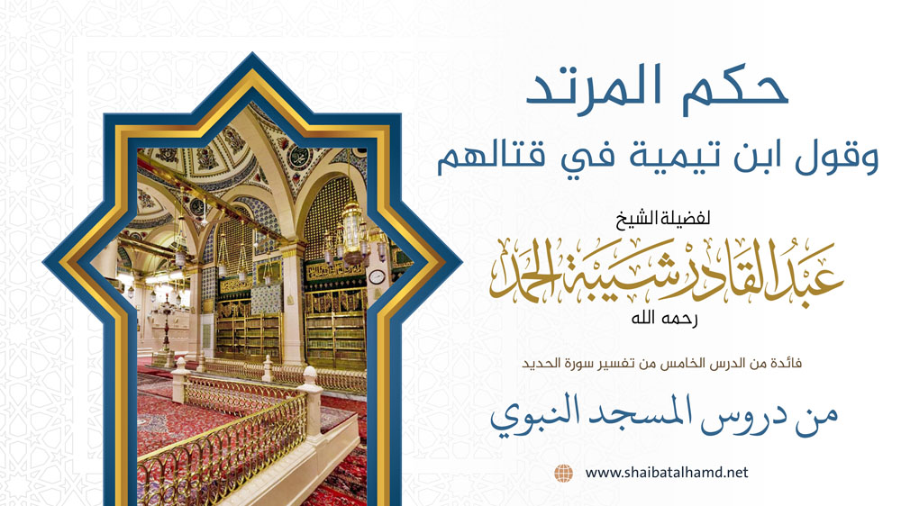 فائدة من الدرس الخامس من دروس تفسير سورة الحديد والتي ألقيت في المسجد النبوي الشريف حول حكم المرتد وقول ابن تيمية في قتالهم.