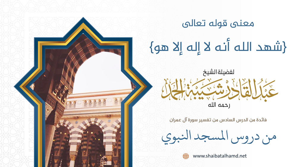 فائدة من الدرس السادس من دروس تفسير سورة آل عمران والتي ألقيت في المسجد النبوي الشريف حول معنى قوله {شهد الله أنه لا إله إلا هو}.
