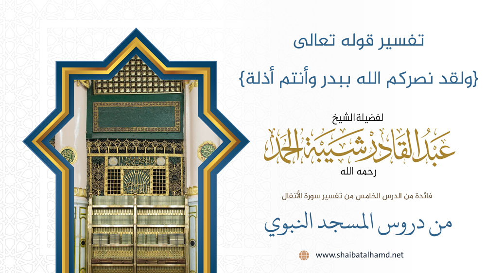 فائدة من الدرس الخامس من دروس تفسير سورة الأنفال والتي ألقيت في رحاب المسجد النبوي حول تفسير قوله تعالى {ولقد نصركم الله ببدر وأنتم أذلة}.
