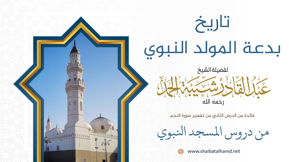 فائدة من الدرس الثاني من دروس تفسير سورة النجم والتي ألقيت في المسجد النبوي الشريف حول تاريخ بدعة المولد النبوي.