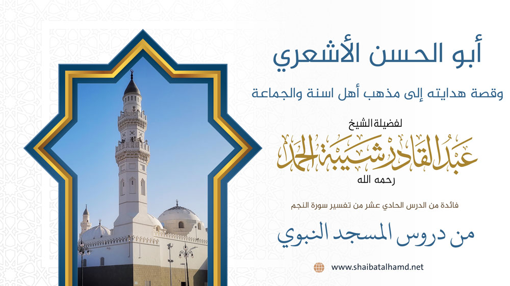 فائدة من الدرس الحادي عشر من دروس تفسير سورة النجم والتي ألقيت في المسجد النبوي الشريف حول أبو الحسن الأشعري وقصة هدايته إلى مذهب أهل اسنة والجماعة.