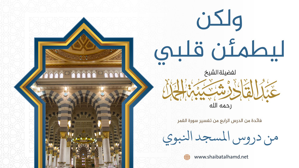 فائدة من الدرس الرابع من دروس تفسير سورة القمر والتي ألقيت في المسجد النبوي الشريف حول نبي الله إبراهيم وطلبه اطمئنان القلب.