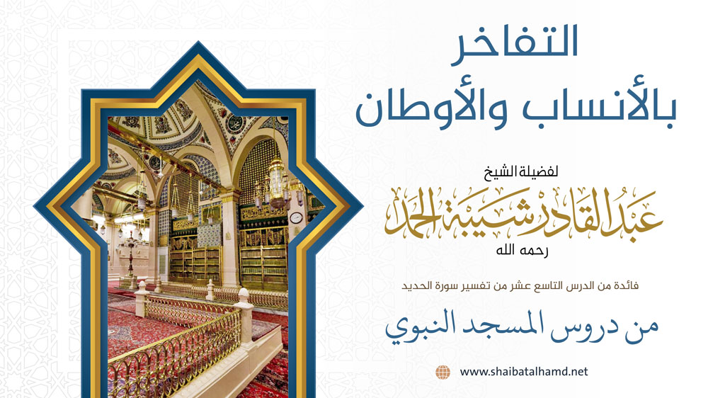 فائدة من الدرس التاسع عشر من دروس تفسير سورة الحديد والتي ألقيت في المسجد النبوي الشريف حول التفاخر بالأنساب والأوطان لا ينفع.