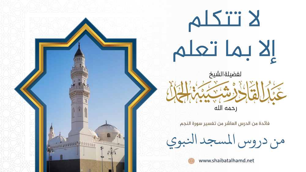 فائدة من الدرس العاشر من دروس تفسير سورة النجم والتي ألقيت في المسجد النبوي الشريف حول لا تتكلم الا بما تعلم.