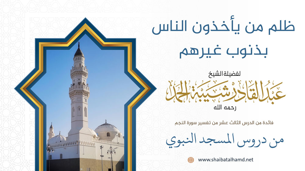 فائدة من الدرس الثالث عشر من دروس تفسير سورة النجم والتي ألقيت في المسجد النبوي الشريف حول ظلم من يأخذون الناس بذنوب غيرهم.