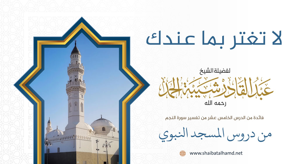 فائدة من الدرس الخامس عشر من دروس تفسير سورة النجم والتي ألقيت في المسجد النبوي الشريف حول أن لا تغتر بما عندك.