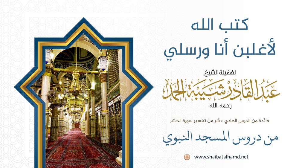 فائدة من الدرس الحادي عشر من دروس تفسير سورة الحشر والتي ألقيت في المسجد النبوي الشريف حول أن من ينصره الله فلا غالب له.