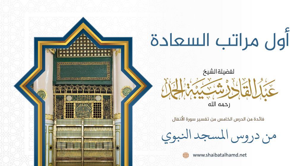فائدة من الدرس الخامس من دروس تفسير سورة الأنفال والتي ألقيت في رحاب المسجد النبوي حول الإيمان بالله وأنه أول مراتب السعادة.