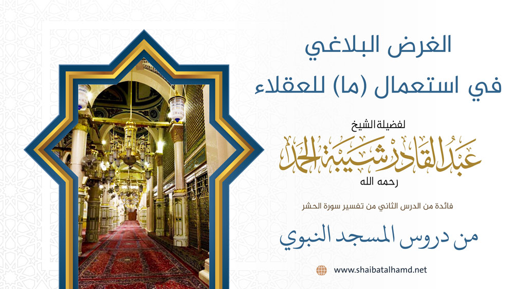 فائدة من الدرس الثاني من دروس تفسير سورة الحشر والتي ألقيت في المسجد النبوي الشريف حول الغرض البلاغي في استعمال (ما) للعقلاء.