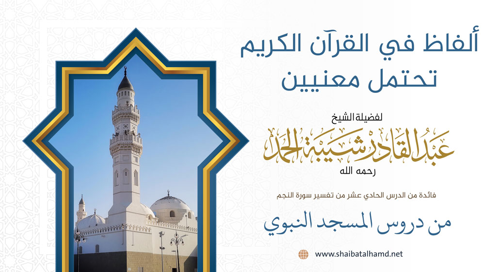 فائدة من الدرس الحادي عشر من دروس تفسير سورة النجم والتي ألقيت في المسجد النبوي الشريف حول ألفاظ في القرآن الكريم تحتمل معنيين.