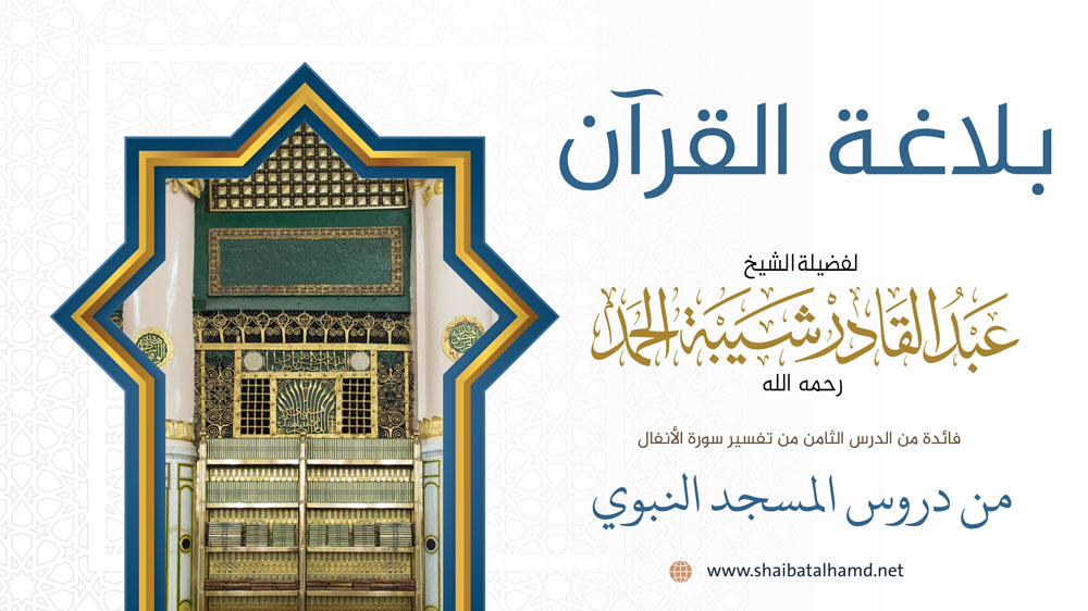 فائدة من الدرس الثامن من دروس تفسير سورة الأنفال والتي ألقيت في رحاب المسجد النبوي حول بلاغة القرآن.