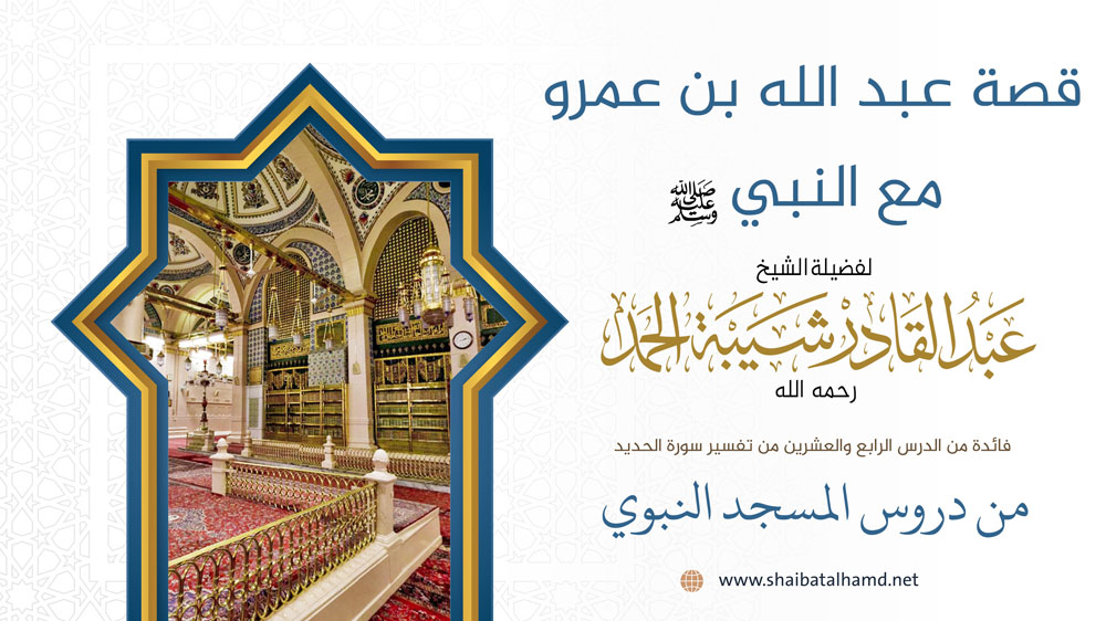 فائدة من الدرس الرابع والعشرون من دروس تفسير سورة الحديد والتي ألقيت في المسجد النبوي الشريف قصة عبد الله بن عمرو مع النبي.