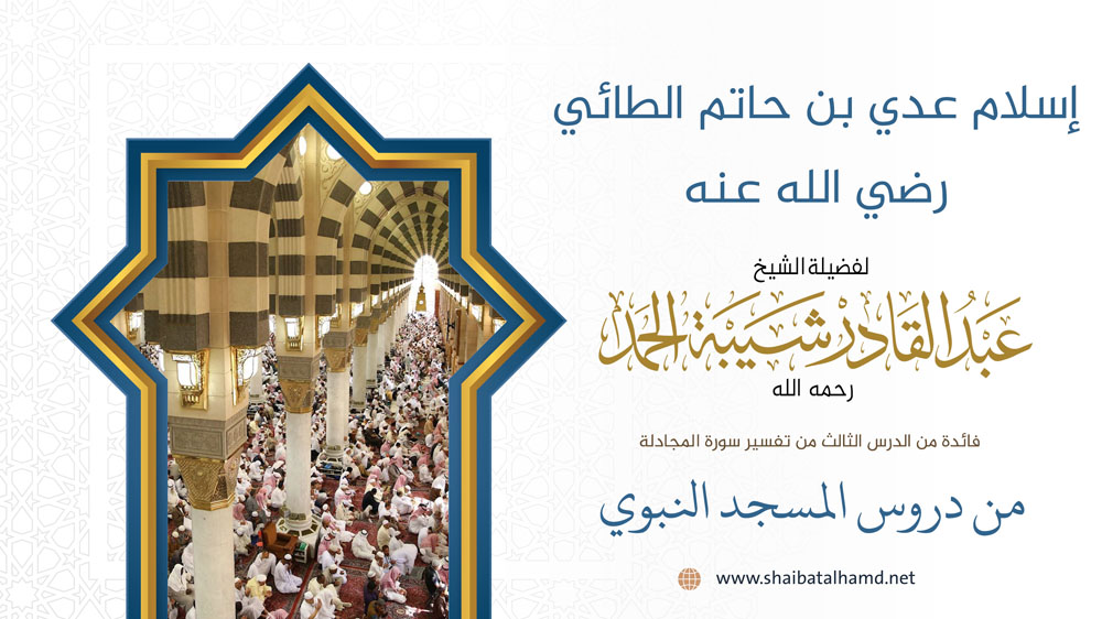 فائدة من الدرس الثالث من دروس تفسير سورة المجادلة والتي ألقيت في المسجد النبوي الشريف حول إسلام عدي بن حاتم الطائي رضي الله عنه.