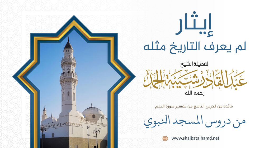 فائدة من الدرس التاسع من دروس تفسير سورة النجم والتي ألقيت في المسجد النبوي الشريف حول إكرام الأنصار للمهاجرين إيثار لم يعرف التاريخ مثله.