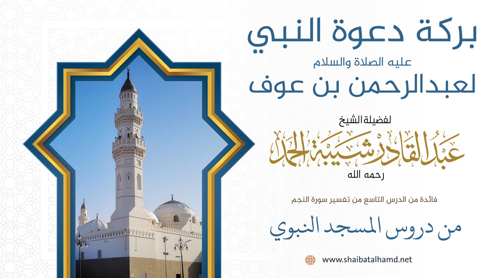 فائدة من الدرس التاسع من دروس تفسير سورة النجم والتي ألقيت في المسجد النبوي الشريف حول بركة دعوة النبي عليه الصلاة والسلام لعبد الرحمن بن عوف.