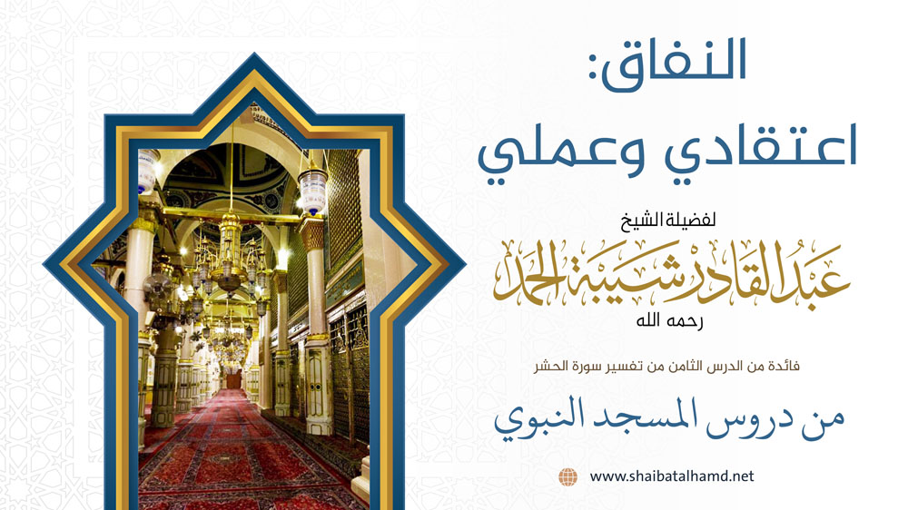 فائدة من الدرس الثامن من دروس تفسير سورة الحشر والتي ألقيت في المسجد النبوي الشريف حول النفاق: اعتقادي، وعملي.