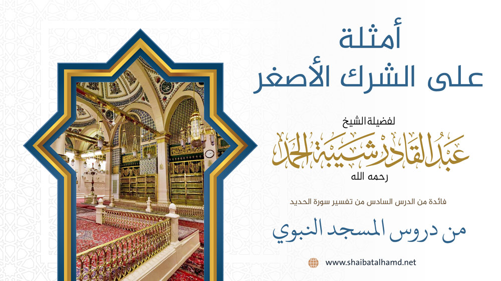 فائدة من الدرس السادس من دروس تفسير سورة الحديد والتي ألقيت في المسجد النبوي الشريف حول أمثلة على الشرك الأصغر.