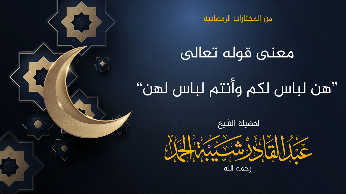 الفائدة مائة وخمسة عشر من المختارات الرمضانية والتي ألقاها الشيخ حول معنى قوله تعالى {هن لباس لكم.. فالآن باشروهن}.