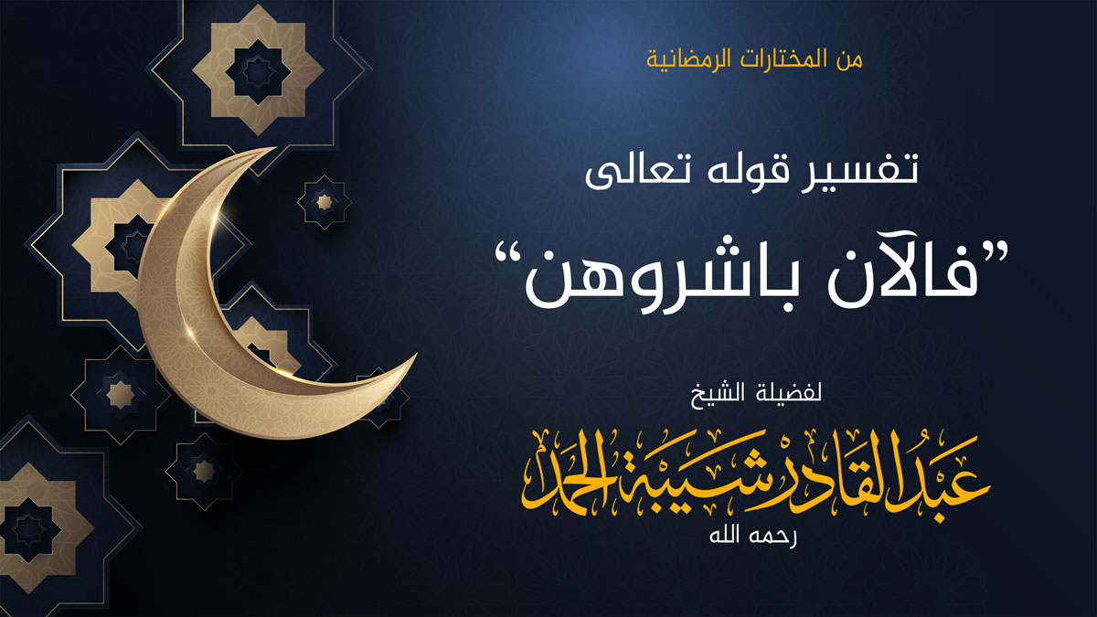 الفائدة مائة وثلاثة من المختارات الرمضانية والتي ألقاها الشيخ حول تفسير قوله تعالى {فالآن باشروهن}.